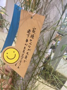 7月7日は七夕という事で、皆様思い思いの願いごとを書いて笹に飾って下さいました。
