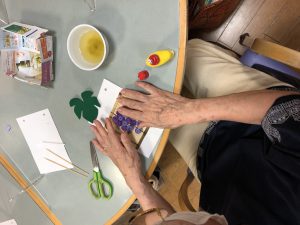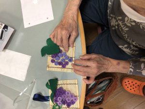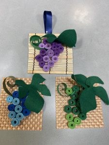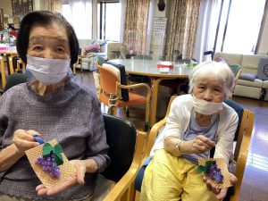 先日、お楽しみレクレーションで作成していただいた、「ぶどうの壁飾り」をご紹介します!