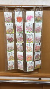 完成した作品は、機能訓練室に向かう廊下に展示しております。
