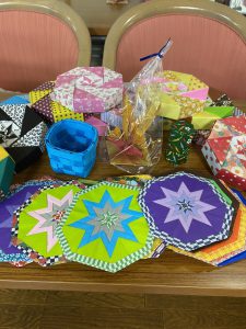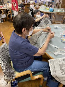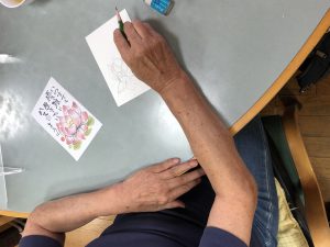 蓮の花に纏わる思い出話をしながら制作されていました(^。^)