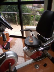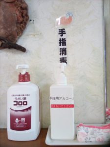 機械を使って運動される時、体操で使った器具、椅子、すべてお一人離れるたびに拭きとり、手の消毒もお願いしています。