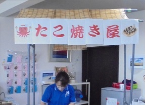 昼食の時間にたこ焼き屋台がフロアに出現し、焼きたてのたこ焼きとその他に焼きそばやおにぎり等も提供させて頂きました。