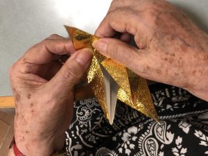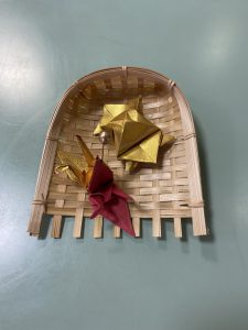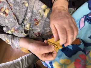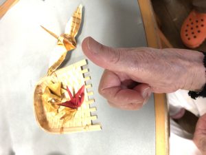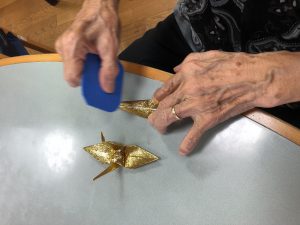 亀を折る作業は、部分的に複雑な折り方がありましたが、スタッフと協力して、無事に折る事ができました!