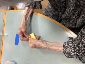 折り紙を折っていただいた後は、スタッフと一緒に手や肩のストレッチを行っていただきました!