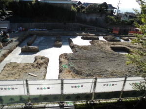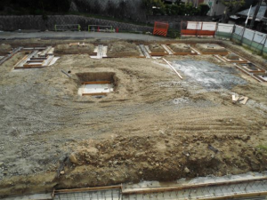 土を固めて型取り、セメントで土台の基盤を作っていっています。