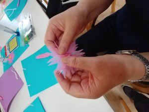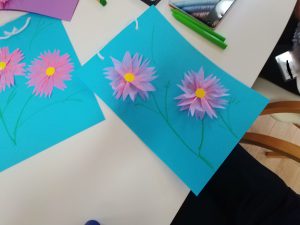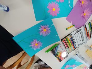 手指リハビリの一環でコスモスを作成していただきました(^^♪