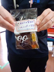 敬老の日週間 2021.10.12 リハビリ西 こんにちは! ハッピーデイリハビリ館西ノ京です。 9/20は敬老の日でした。リハビリ館西の京では9/20からの一週間、日々の感謝を込めて ささやかなプレゼントをお渡しさせてもらいました。 ひとりひとり違う言葉を添えてお渡ししました。 「いくつになっても、こういった物をもらえるのは嬉しいね~」と喜んでいただけました。 今後ともリハビリ館西ノ京をよろしくお願いします\(^o^)/
