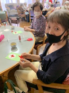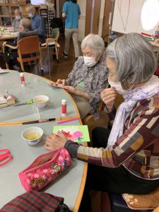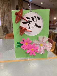 コスモスと赤とんぼッ! 2021.10.02 デイサービス こんにちは! ハッピーデイサービスセンターです(*^^*) 今回は、折り紙で作った「コスモスと赤とんぼ」のご紹介です! まずは折り紙で赤とんぼを折ります! 立体的な赤とんぼに苦戦されています(>人<;) 無事に赤とんぼが折れたら、次はコスモスの作成です! どのように配置するのか考え中…(u_u) 完成すると、このようになります! 秋の過ごしやすい日が続いていますね〜(^○^) 皆様、楽しく、健やかにお過ごしください!