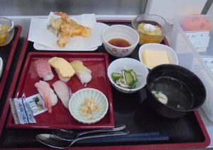 いよいよ本番の食事会では握り寿司に揚げたての天ぷらとフルーツゼリーなどをご用意!
