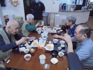次は健康長寿を願いつつ、体に良いストレッチを実施。皆様「背筋が伸びて気持ちいい」と仰っていました。