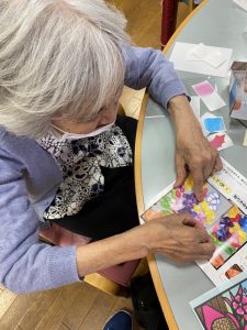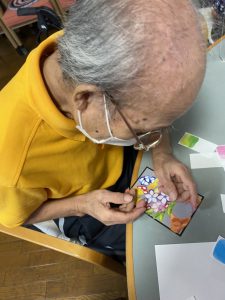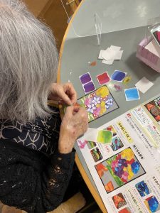 ちぎって、貼って! 2021.10.16 デイサービス こんにちは! ハッピーデイサービスセンターですッ!(^○^) 今回は、手芸レクレーションのご紹介です。 色とりどりのシールをちぎって台紙に貼りつけて、お花の絵を完成させる手芸キットです! 細かい作業の連続で、とても良い機能訓練になります。 ジャンッ! 完成すると、とても綺麗なお花の絵が現れます〜(*^^*) 皆様、お部屋や玄関に飾って頂いています。 大変な作業でしたが、喜びもひとしおですね! お疲れ様でした〜*\(^o^)/*