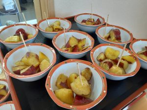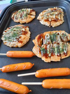 お好み焼きにフランクフルトデザートに大学芋を作って頂きました。