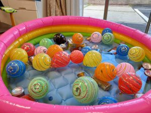 ヨーヨ釣りでは、中に飲み物が入っており、釣り上げてゲットしていました。