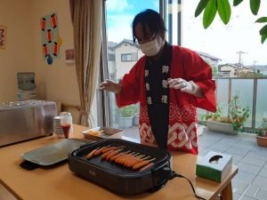 当日は、スタッフのお子さんも来られてて、射的でゲットしたおやつをお子様へ