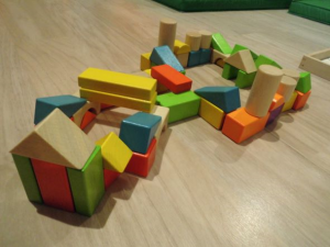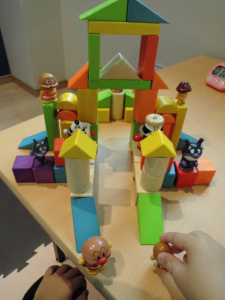 上の写真は違う積み木を使っての子どもたちの作品ですが、