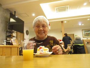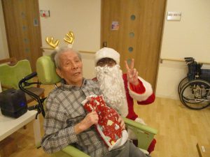 職員がサンタさんになり、入居者のみなさんにプレゼントを配って回りました!