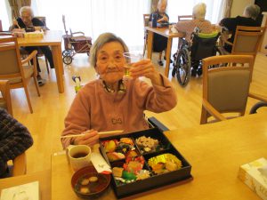 お昼ご飯には、おせちとお屠蘇も出て皆さんとても喜ばれていました!