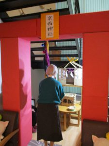 そんな中、ガーデン京西では京西神社を作って(段ボール)、プチ初詣を行いました(*’▽’)
