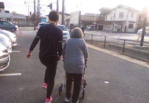 利用者様の希望もあり、屋外歩行も実施します。駐車場の周りを一緒に歩きます(^_^)/