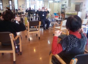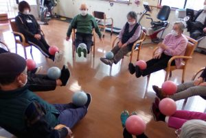 小集団での運動ではボールを使って膝周りの筋肉を動かし、膝が痛くなるのを予防します!(^^)!