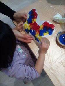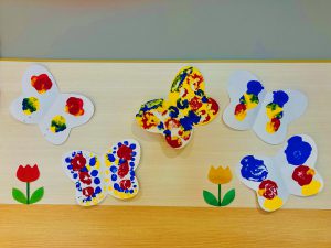 ちょうちょの画用紙を広げた時に、嬉しそうな表情で出来上がった作品を見つめたり、スタッフにも「見て、ちょうちょ!」とにこにこしながら見せてくれました(^^)