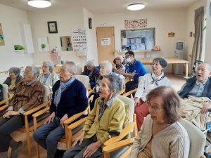 いつも音楽療法を楽しみにされており、毎回多くの参加者がいてとてもいい表情をされています。