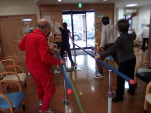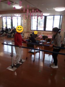 平行棒での運動は、下肢筋力UPやバランス力UPに効果があります(*^^)v