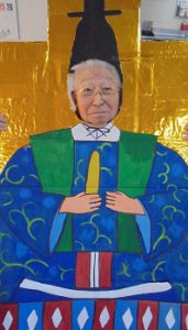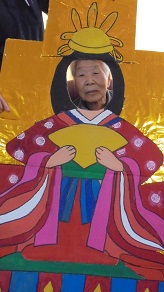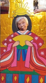 さらに入居者様にスタッフ手作り顔出しパネルを使って記念撮影です。