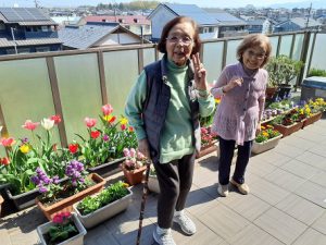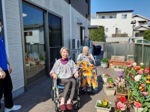 春が来た~♬ 2022.04.12 ガーデン西ノ京 こんにちはハッピーガーデン西ノ京です(*^-^*) いつもブログをご覧いただきありがとうございます。 今日はガーデン西ノ京のお庭の様子をお伝えしたいと思います。 今年はチューリップも綺麗に咲き、色々なお花たちも 満開に咲いています。 入居者様も「綺麗に咲いてるね~今年は去年と比べて満開やね~」と喜んでおられました。