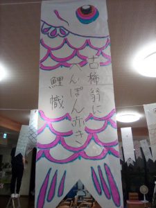 色鮮やかな鯉や文字があしらわた鯉がお出迎え。