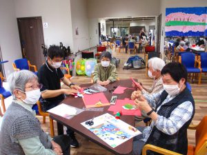 皆さんいかがお過ごしでしょうか?春は三寒四温があると言いましても、余りにも寒暖差が激しく体調管理が難しい今日この頃ですが、体調には十分にご注意ください。さて、今回ハッピーリライフでは五月と言えば子供の日ということで、鯉のぼりならぬ、鯉の滝上りを皆で作りました。