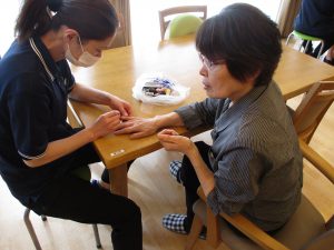 手をもみほぐして綺麗にし、さらにネイルでグレードアップ!