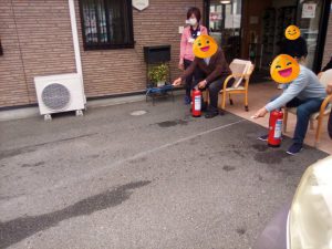 初めて消火器に触れられた利用者様もおり、一言「火事の時には私が活躍するわ!!」とおっしゃってました。