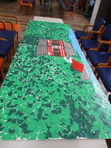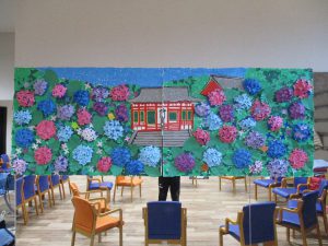 そしてついに、矢田寺と紫陽花が完成しました!!皆さん「良いのが出来たねー」と笑顔でとても満足そうに、喜んでおられました。皆さんのおかげで、ジメジメと不快な梅雨もハッピーリライフでは爽やかに過ごせそうです。皆さん本当にありがとうございました。そしてお疲れ様でした!!
