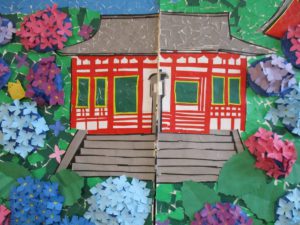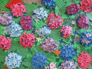 皆さんいかがお過ごしでしょうか?6月になり梅雨に入りましたね。ジメジメとして、私達にとっては嫌な時期ですが、草や木や花にとっては嬉しくて、とても大切な恵みの雨だと思うので、我慢しようと思います。さて今回ハッピーリライフでは、矢田寺と紫陽花を皆で作りました。