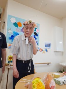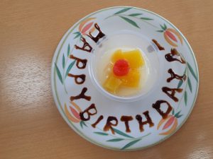 誕生日 2022.06.18 ガーデン西ノ京 こんにちは~(^^♪ 梅雨の頃、皆様どのようにお過ごしですか? お天気が優れない日が続きますが、お体ご自愛下さい(^O^)/(^O^)/ 今月誕生日の方です。みんなでデザートを楽しみました。 厨房さんがチョコソースでデコレーション♬ 美味しそうですね(^◇^) 誕生日プレゼントをお渡しすると喜んでくださいました! 誕生日のお祝いはいくつになっても嬉しいものです。 おめでとうございます!!