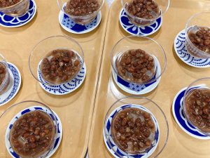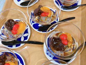 写真は先日おやつに提供した手作りの冷やしぜんざいです。