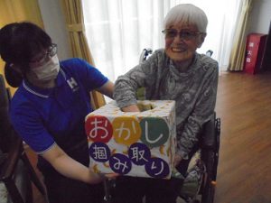 優勝した順番にお菓子のつかみ取りをして頂き、皆でお茶会をして終了しました。