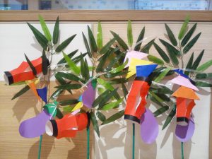 完成すると「みてみて!」と、とても喜んでおられ、中には「この笹、織姫と彦星に見せるねん!」と教えてくださる子もいました。
