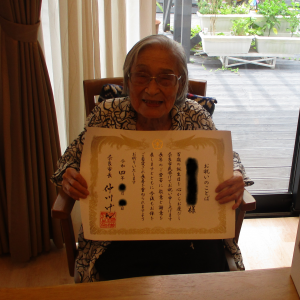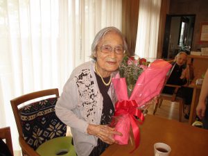 祝!100歳💐 2022.07.11 ガーデン京西 こんにちは! ハッピーガーデン京西です。 猛暑が続き、35℃くらいの日が連続しています。 しっかりと水分補給をして、暑さ対策をしていきましょう(^^)/ 今回はとてもめでたいことに、7月で100歳の誕生日を迎えた方がいらっしゃいます!! とても100歳にはみえないほどで、今もとても元気に生活されています! これからも、お変わりなくお元気に過ごして頂けるよう、精一杯寄り添っていきたいと思います!(^^)!