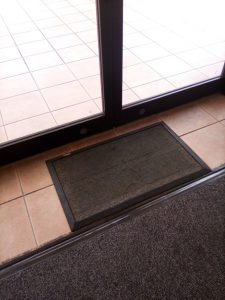 お迎えから到着時には消毒液の染み込んだマットで、靴の裏を綺麗にしてもらいます。