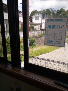 窓を少しづつ開けて、所々にサーキュレーターや空気清浄機を設置して空気が滞らない様にしています(*´-`)
