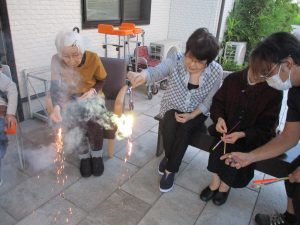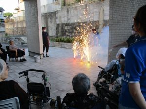 手持ち花火だけでなく、最後には噴射花火も盛大に行いました!