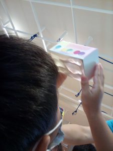 完成した箱を電気や窓の光越しに見てみると、キラキラ輝くきれいな光の箱!
