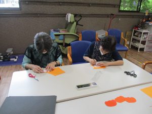 皆様いかがお過ごしでしょうか?昨日までクーラーをつけていたと思ったら、いきなり寒くなり暖房をつけたという方もいらっしゃるのではないでしょうか。本当にお互い体調には気をつけたいですね。さて、今回ハッピーリライフでは、ハロウィーンの飾りの帽子を皆で作りました。