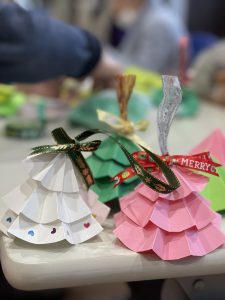 白や緑やピンク、色んなクリスマスツリーが出来ました!皆さんそれぞれに好きなシールも貼って完成した自分の作品を持って帰られました。家のどこかに飾って頂き、今年も良いクリスマスになると良いですね。ハッピーメリークリスマス!!お疲れ様でした。