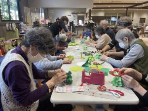 皆さんいかがお過ごしでしょうか?12月に入り、だんだん寒くなってきましたね。引き続きコロナと、インフルエンザには気をつけたいですね。さてハッピーリライフでは、クリスマスツリーの飾りを皆で作りました。