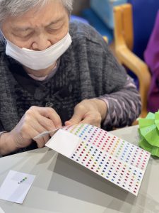 ツリーに貼るシールが非常に細かくて皆さん「ピンセットが欲しいわ!」とおしゃってましたが、何とか器用にシールと格闘しながら貼っておられました。流石です!!