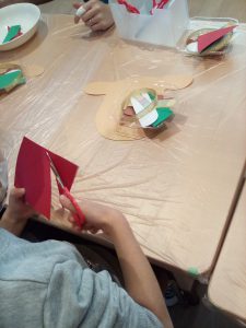 製作中は「サンタさんに頼むプレゼント何にしようかなあ。」「奈良公園でいっぱいトナカイ見たよ!」(それは鹿だよ^^)