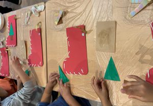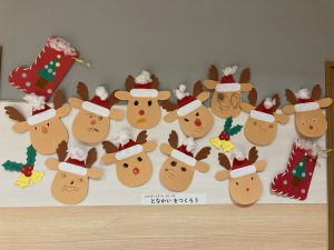 子どもたちは、トナカイの角の方向を確認したり、帽子の深さを調整する等、何度も見本を確認しながら、楽しんで作ってくれました。